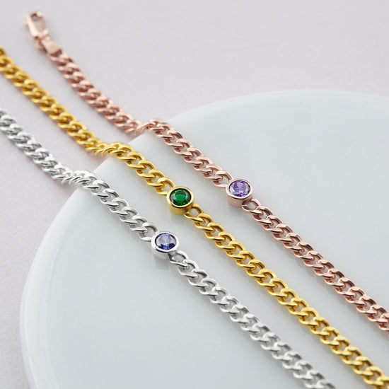 Tiny gems for tiny wrists, a precious link to life's first bliss. Our Baby Birthstone Bracelet is a delightful piece of kid jewelry that combines elegance with sentimental value. This custom kid bracelet features a dainty chain in your choice of silver, gold, or rose gold, adorned with a sparkling birthstone that captures the magic of your little one's birth month. The toddler bracelet with birthstone is crafted to be both beautiful and durable, making it the perfect newborn birthday gift or special occasion present. More than just baby jewelry, it's a timeless keepsake that celebrates the joy they bring to your family.