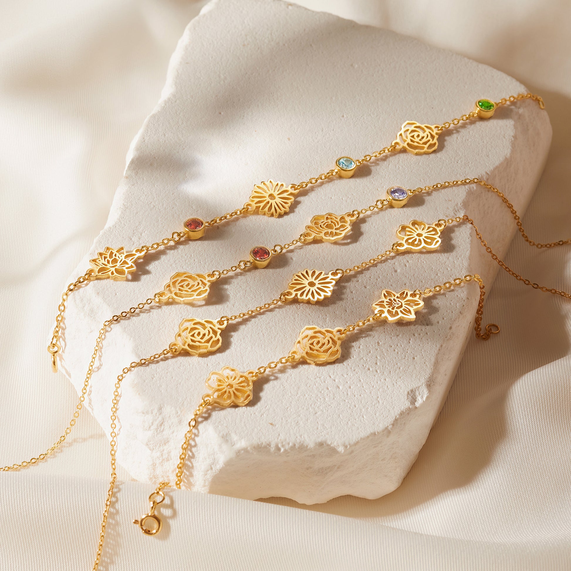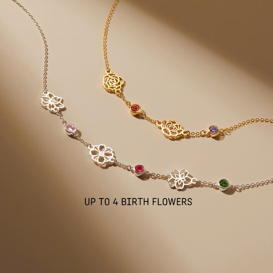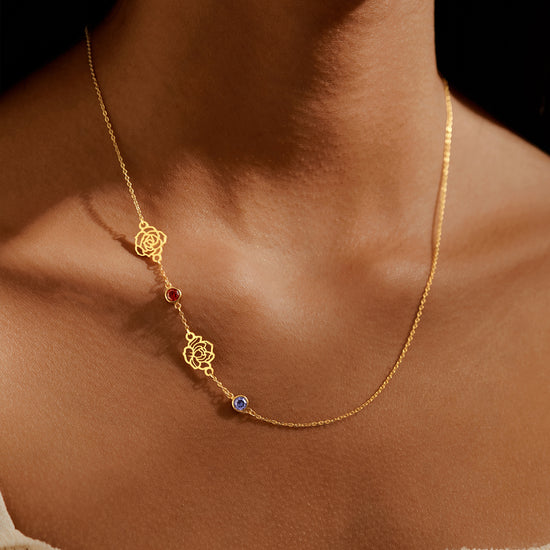 The Personalized Birth Flower Necklace is a thoughtful present to celebrate the special women in your life. Delicate birth flowers, sparkling with the colors of birthstones, make it a perfect mom gift as one of the most unique gifts for her. Each luminous blossom and stone, crafted with meticulous detail, is a beautiful reminder of the cherished connections she holds dear.