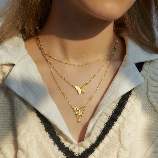 Embrace your personal charm by wearing our exclusive Initial Necklace with Butterfly, a must-have fashion piece. Featuring a captivating butterfly charm, these stylish necklaces allow you to showcase your distinct identity with confidence. Make it your own or surprise a cherished loved one with this personalized treasure, perfect for any celebration, from birthdays to anniversaries.