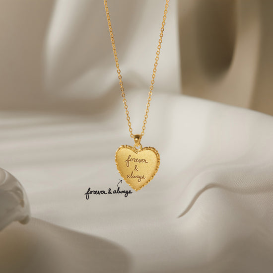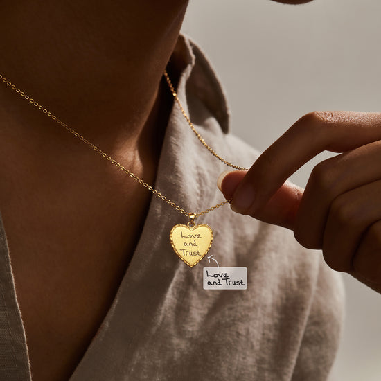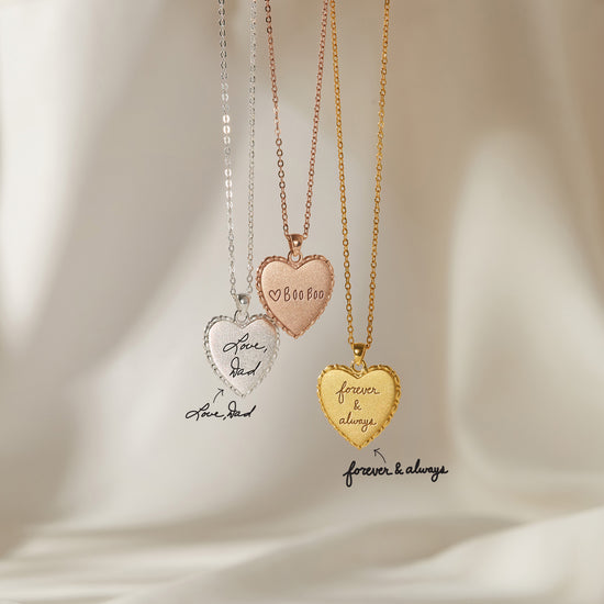 Hold your loved one’s words close with our Handwriting Heart Necklace, a deeply personal piece of Handwriting Jewelry that captures the essence of a special memory. This Custom Necklace allows you to engrave a signature or message in a delicate heart-shaped pendant, turning handwriting into a cherished keepsake. With this Jewelry with Handwriting, you carry the ones you love most, always near to your heart.