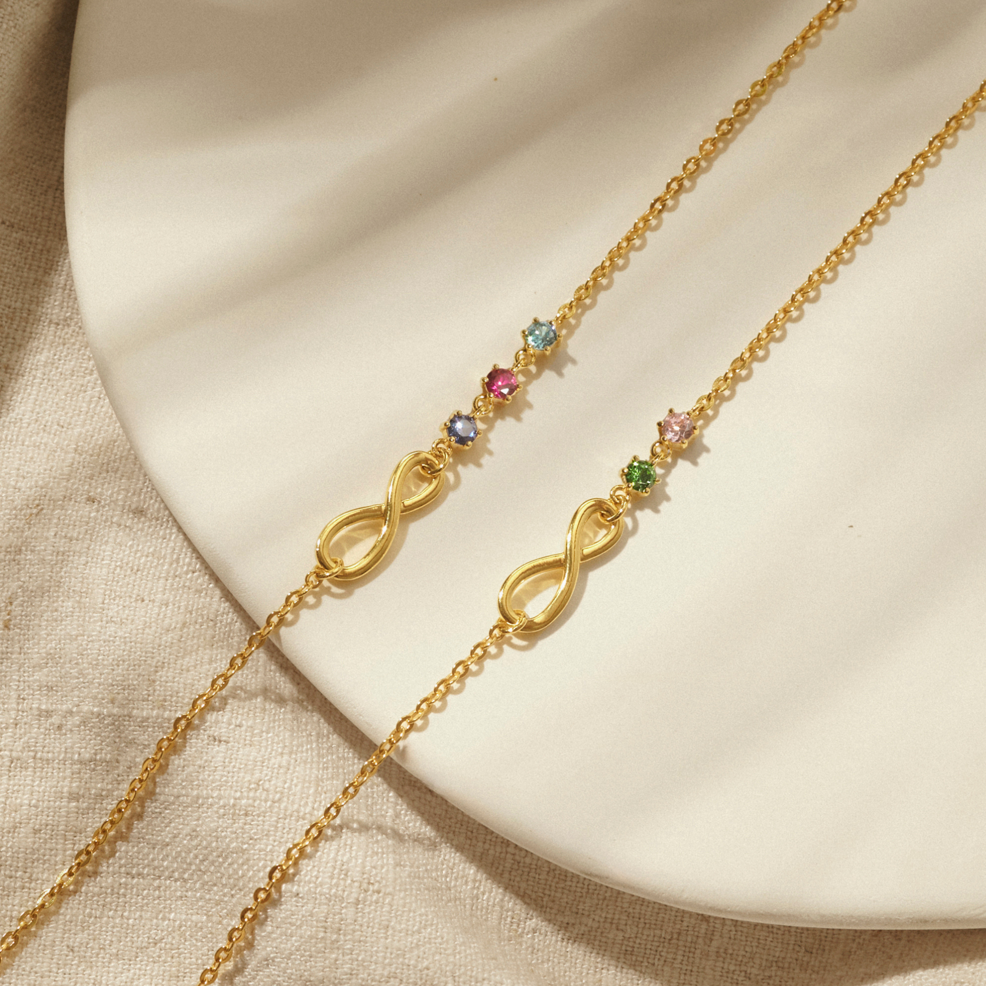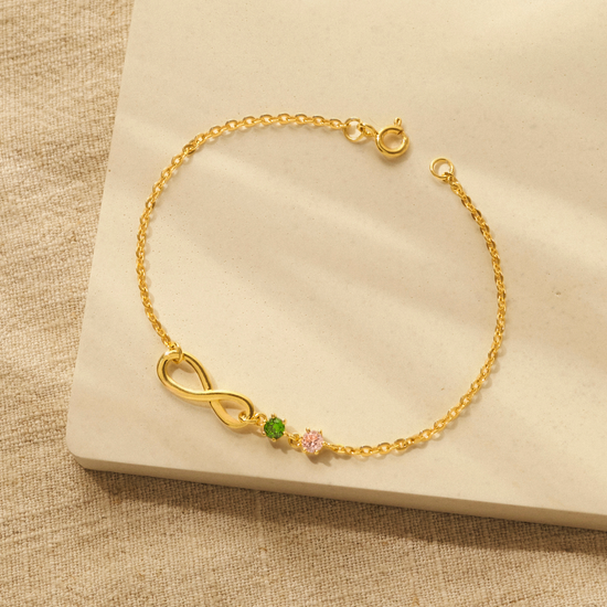 Celebrate the everlasting bond of love with our delicate Infinity Birthstone Bracelet, a timeless piece designed for meaningful gifting. The elegant infinity symbol represents unending affection, beautifully paired with personalized birthstones that capture each family member’s unique sparkle. Thoughtfully crafted to blend sentiment and style, this bracelet makes a touching gift from daughters or granddaughters to their mom or grandma. Perfect for Mother’s Day, Christmas, birthdays, or any special occasion, this personalized keepsake is sure to bring joy to her heart and grace to her wrist for years to come.