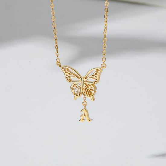 Make her heart skip a beat with our Initial Butterfly Necklace, designed to be as unforgettable as she is. This custom letter necklace features a graceful butterfly charm and her initial, creating a personalized gift for her that she'll treasure forever. Make any occasion unforgettable with this heartwarming piece of initial jewelry, designed to capture your special bond in a beautifully crafted keepsake.