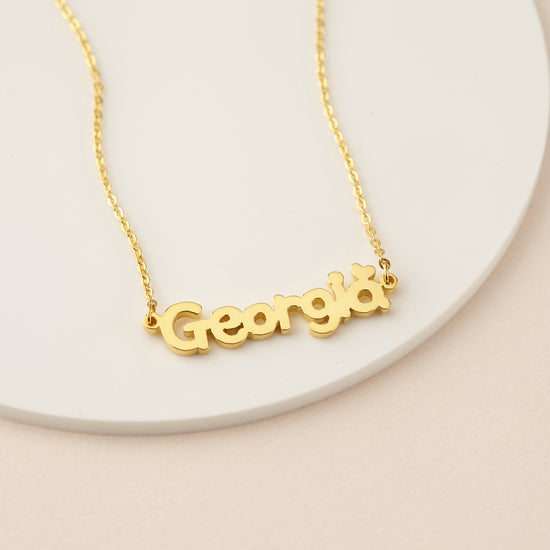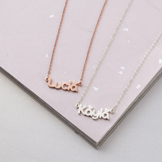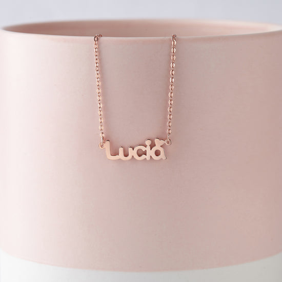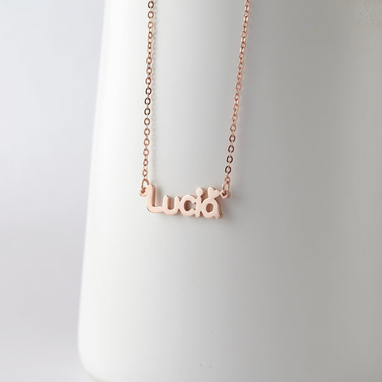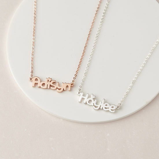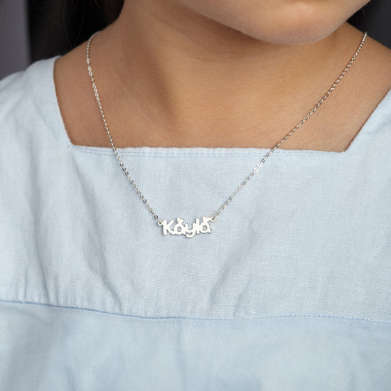 Explore our charming name necklace for kids, highlighted with a cute little heart pendant. This personalized necklace adds a sweet and playful touch, making it a perfect gift for any occasion. Crafted with quality and designed for everyday wear, it's a keepsake kids will love!