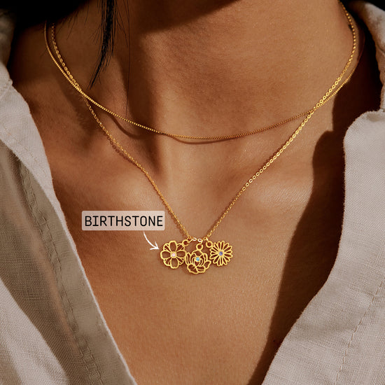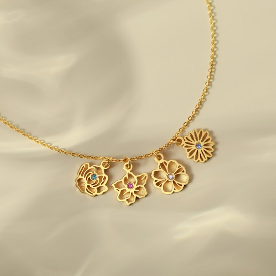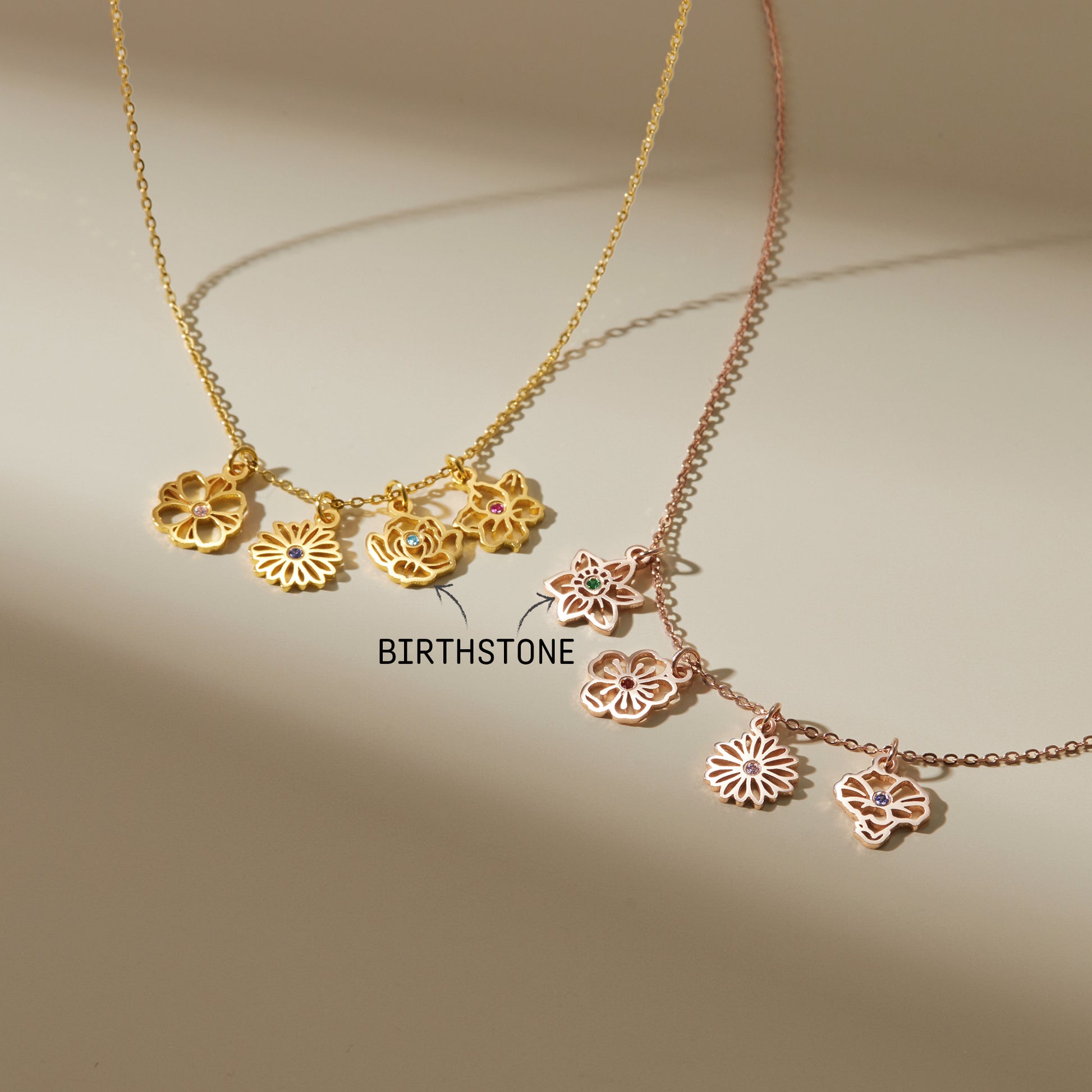 Beyond a piece of jewelry, it's her story. Our birth flower necklace with birthstone lets you personalize a unique necklace just for the special woman in your life. A thougful gift, featuring birthstones and birth flowers reflecting the months her precious children entered the world, which shows your love and care, for every Mom.
