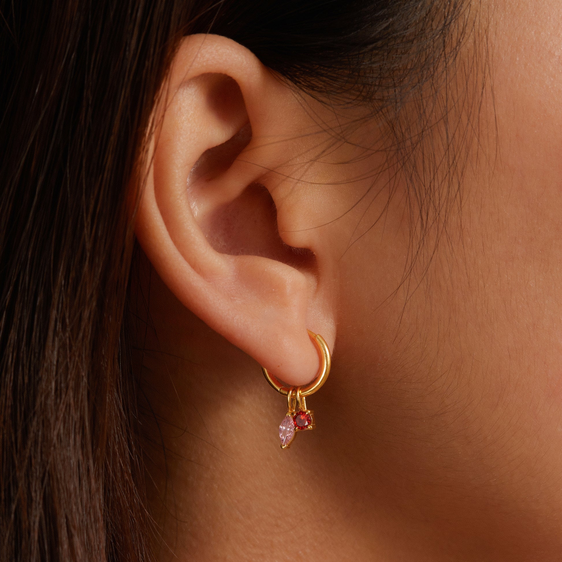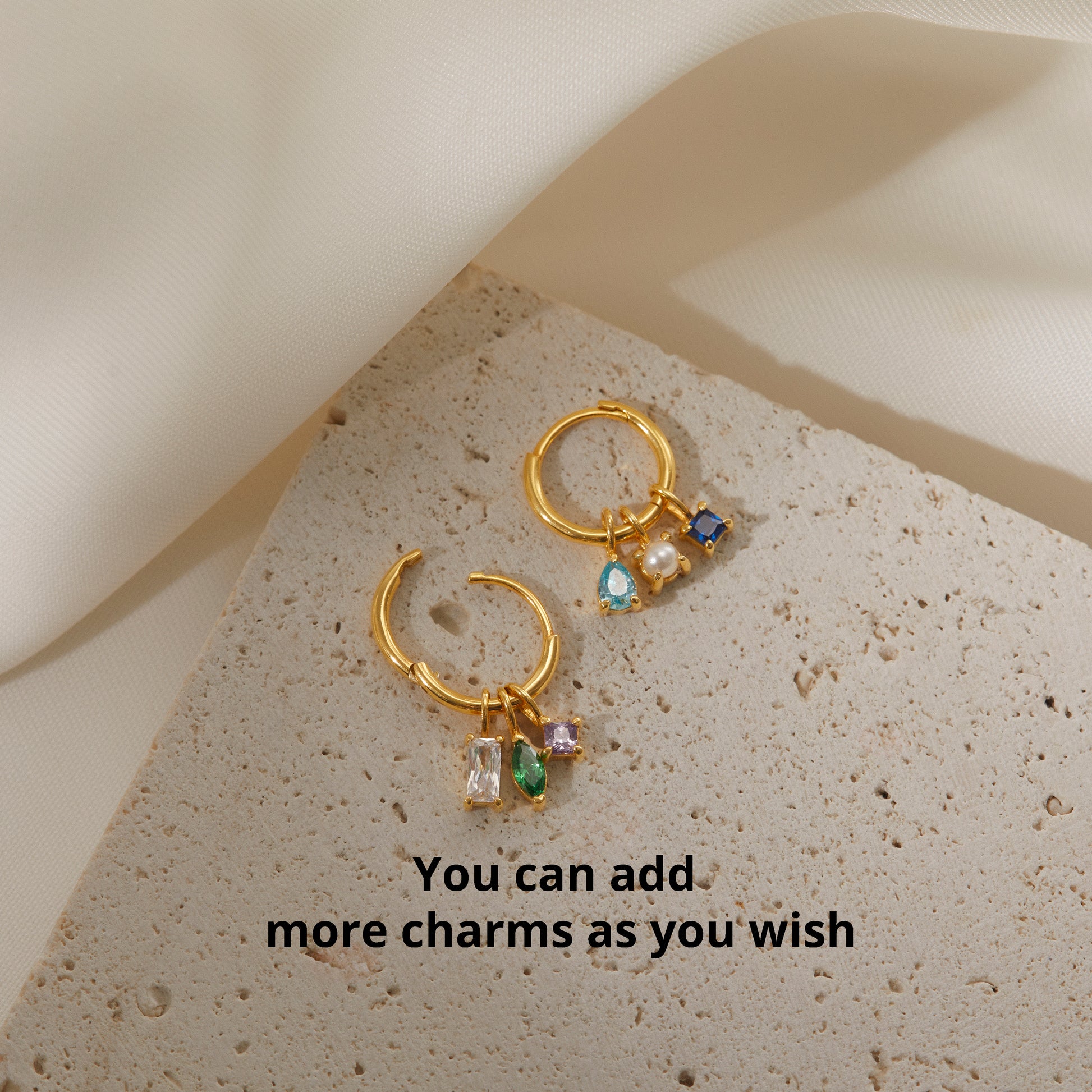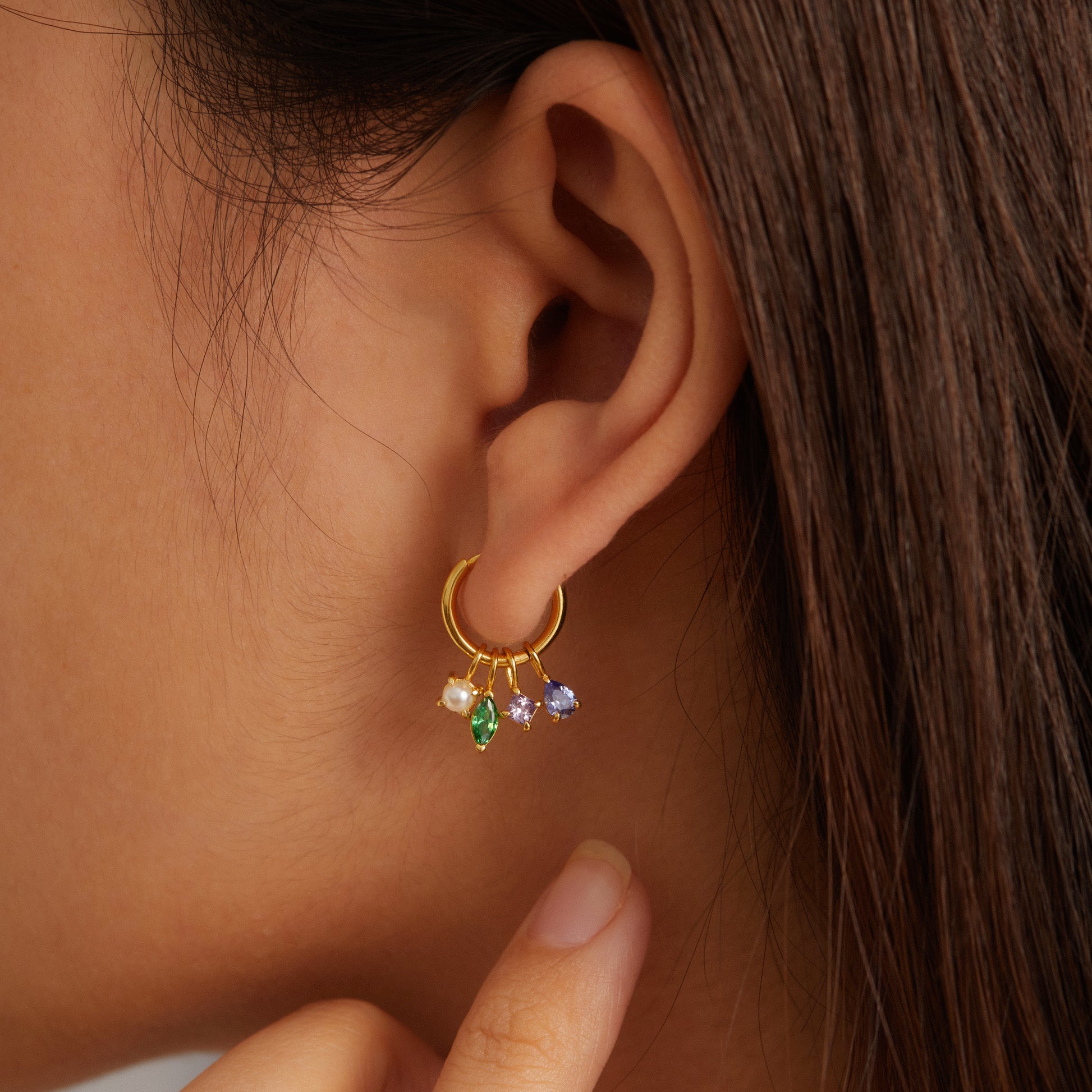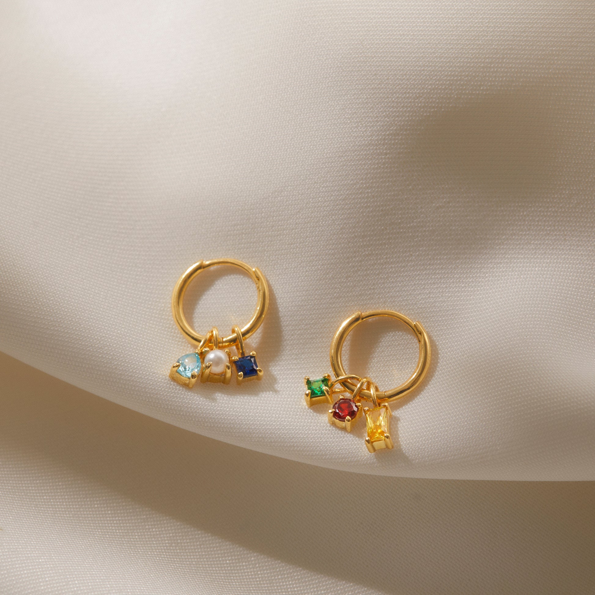 Elegant, timeless, and full of meaning — these hoop birthstone earrings beautifully symbolize love, family, and connection. Each finely crafted hoop is adorned with radiant square-cut birthstones, carefully arranged in a graceful, staggered pattern that captures the light with every movement. The delicate milgrain detailing along the edges adds a touch of vintage charm, making the design both classic and refined. Thoughtfully handcrafted to suit any occasion, these earrings are perfect for mothers and grandmothers who cherish sentimental, personalized jewelry. Whether worn daily or on special occasions, they serve as a sparkling reminder of the people who mean the most.