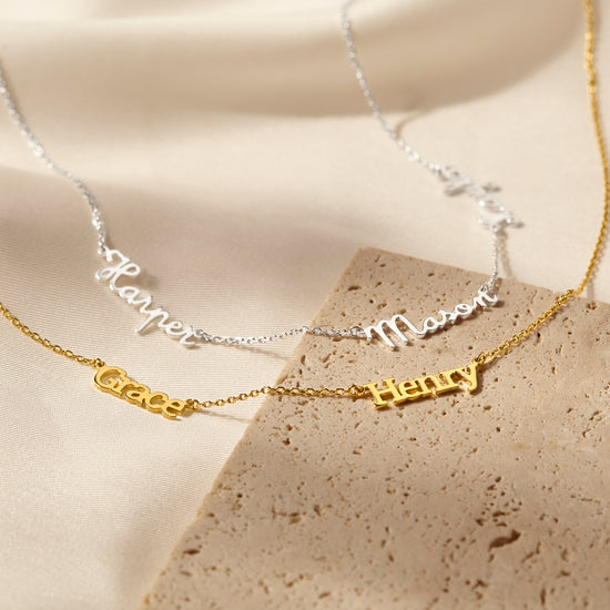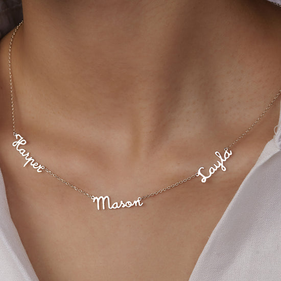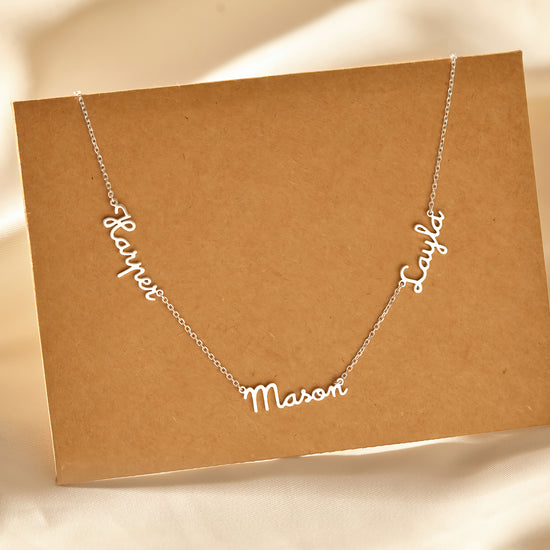 Embrace the beauty of simplicity with our dainty Multiple Kids' Name Necklace, a heartfelt tribute to the unbreakable bond between Mom and her children. This elegant Personalized Mother's Necklace can hold up to four names, making it a touching gift for any occasion. Available in sleek silver, rose gold, or gold, this Mom Jewelry piece adds a truly personal touch to her collection. Whether as a thoughtful gesture for a birthday, anniversary, or just because, this Custom Mom Gift is sure to bring a smile to her face and warmth to her heart, making it a cherished keepsake for years to come. Perfect for gifting to mothers and mothers-in-law alike