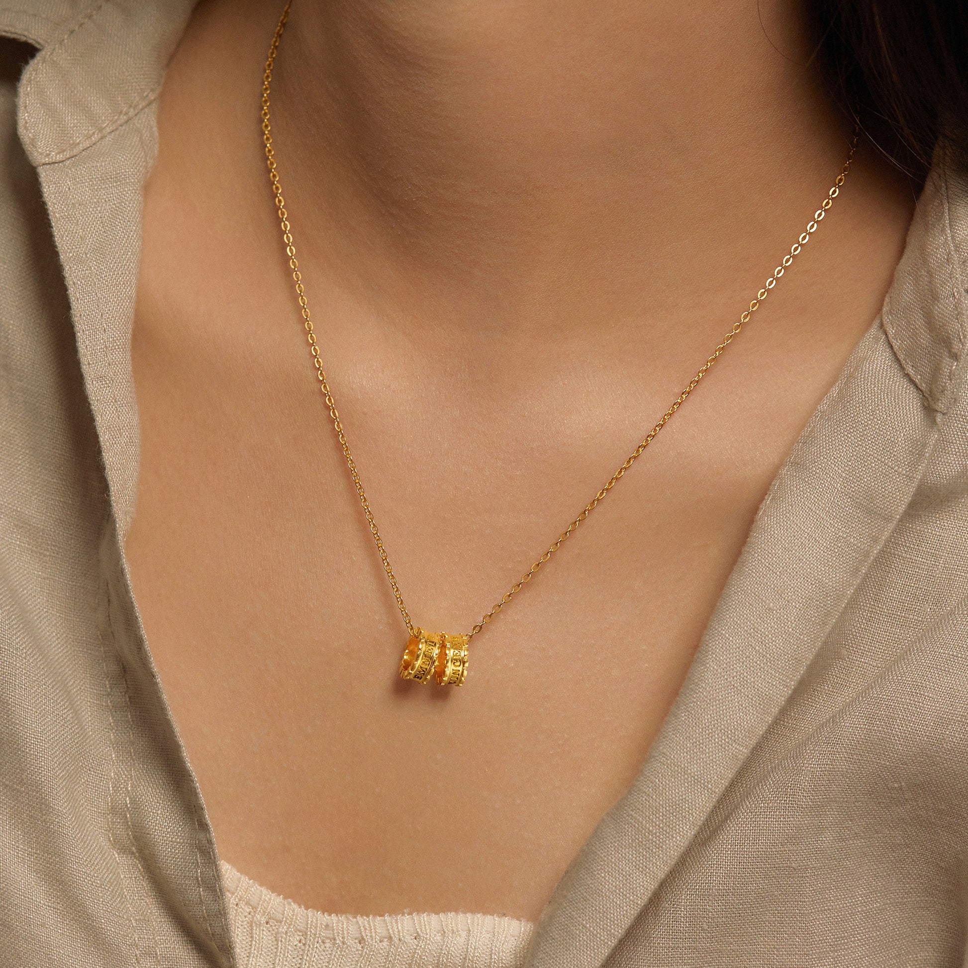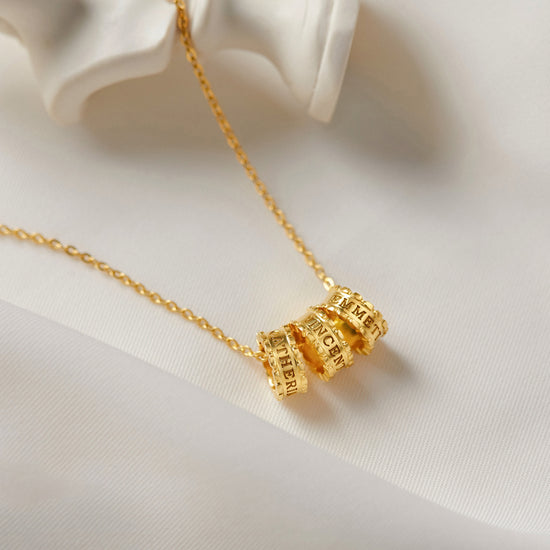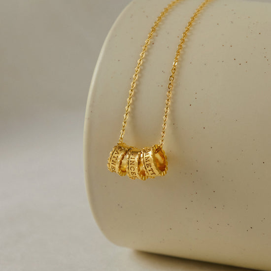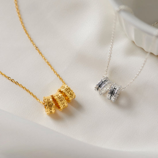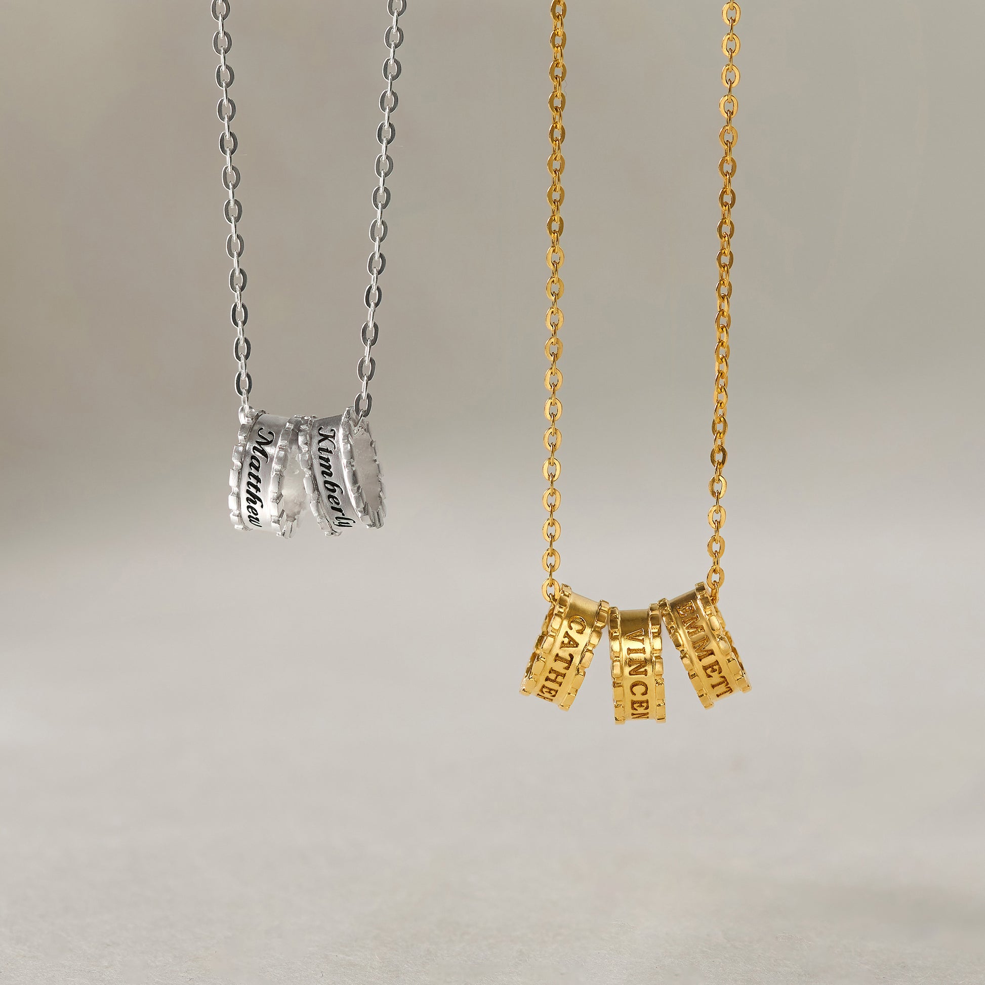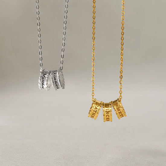 A sleek and timeless round charm necklace engraved with the names of her children, creating a meaningful symbol of love and family. Elegant and minimalistic, this piece is perfect for everyday wear, allowing moms to keep their little ones close to their hearts. A heartfelt gift for any occasion.